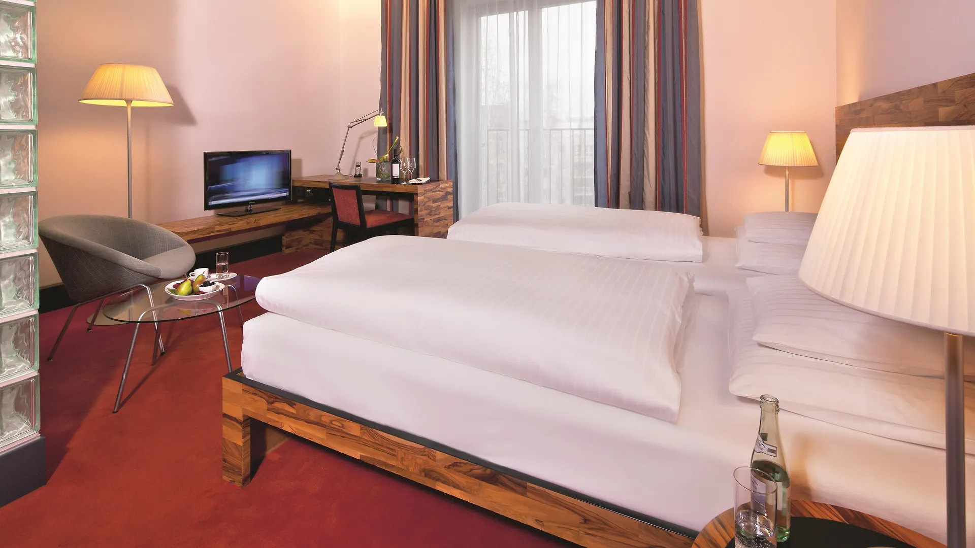 Todos os quartos do Moevenpick Hotel Berlin Am Potsdamer Platz têm sofá, escrivaninha e cofre privado, bem como banheira, casa de banho separada e chuveiro. Tem uma vista para a cidade.